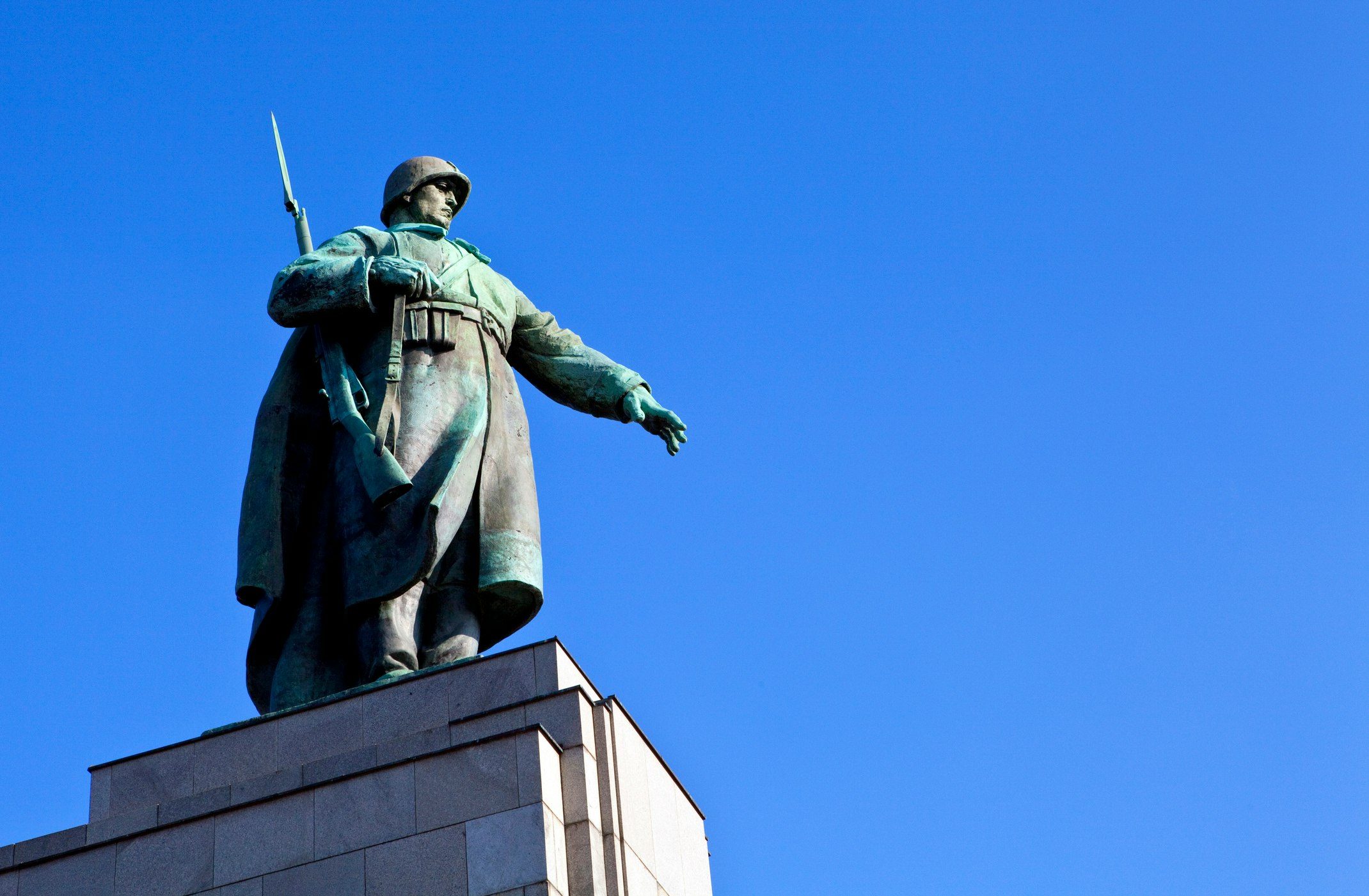 The Soviet War Memorial in Treptower Park is the largest, built in 1949 to honour the 80,000 Soviet soldiers who died in the Battle of Berlin in 1945. A massive bronze statue of a Soviet soldier holding a child and crushing a swastika under his boot stands atop a burial mound containing the remains of 5,000 soldiers.