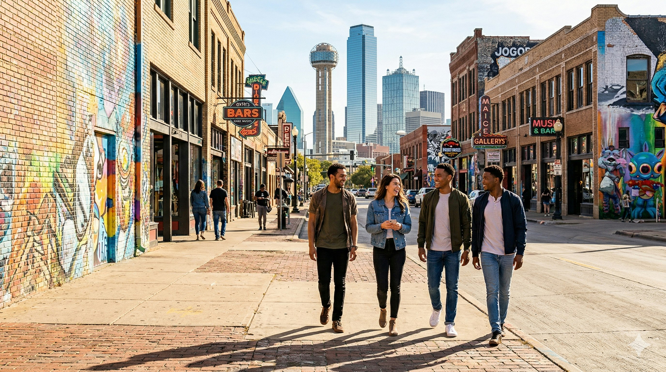 East of downtown, Deep Ellum is Dallas's historic blues and jazz neighborhood, now a concentrated music, art, and food district with one of the best street art collections in Texas on its walls. The murals alone justify a walk; the restaurants and bars make staying for several hours reasonable. Come in the evening when the music venues open and the district's energy peaks.