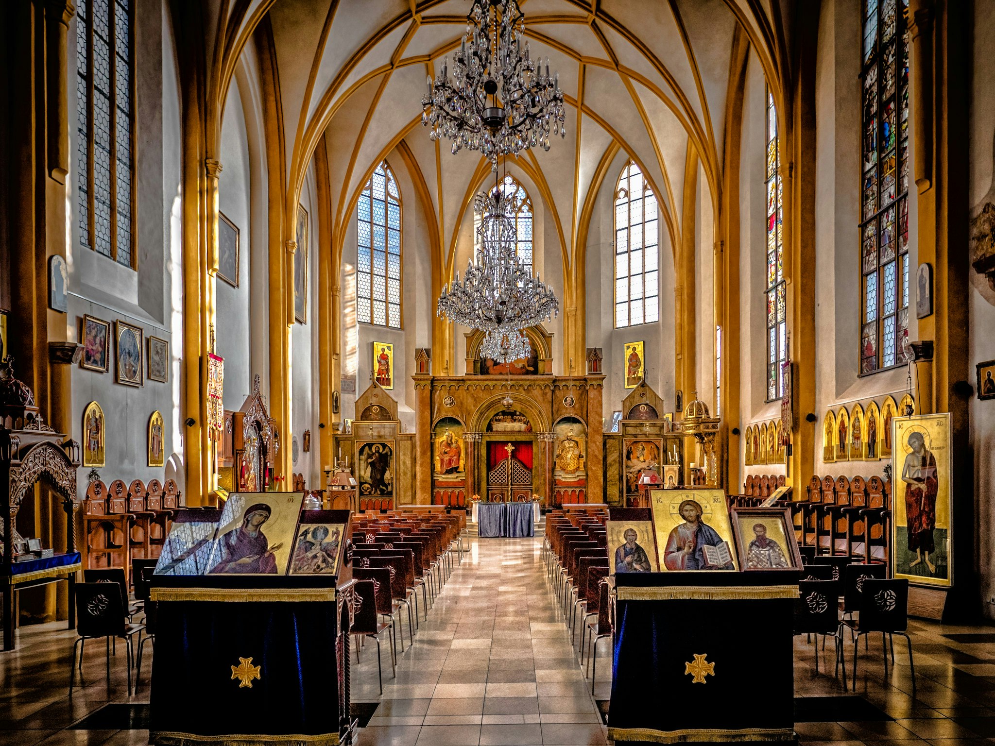 Discover the spiritual transformation of Salvatorkirche, a building that has evolved across faiths and centuries while maintaining its architectural integrity. Built in 1493 by master builder Lukas Rottaler, this striking red brick structure embodies the late Gothic style with powerful vertical lines and intricate details. Originally constructed as a cemetery church serving Munich's spiritual needs, the building found new purpose in 1829 when it became a Greek Orthodox cathedral, creating a unique bridge between Western and Eastern Christian traditions. The renowned architect Leo von Klenze enhanced the interior with a magnificent iconostasis, the ornate screen of icons central to Orthodox worship. The original Gothic ceiling and brilliantly colored stained glass from 1497-1499 still crown the space, creating an atmosphere of transcendent beauty. Questo's wanderings through Munich's spiritual heritage would pause here, marveling at how a single building can honor multiple faith traditions while maintaining its Gothic soul. This church is a testament to Munich's cultural evolution.