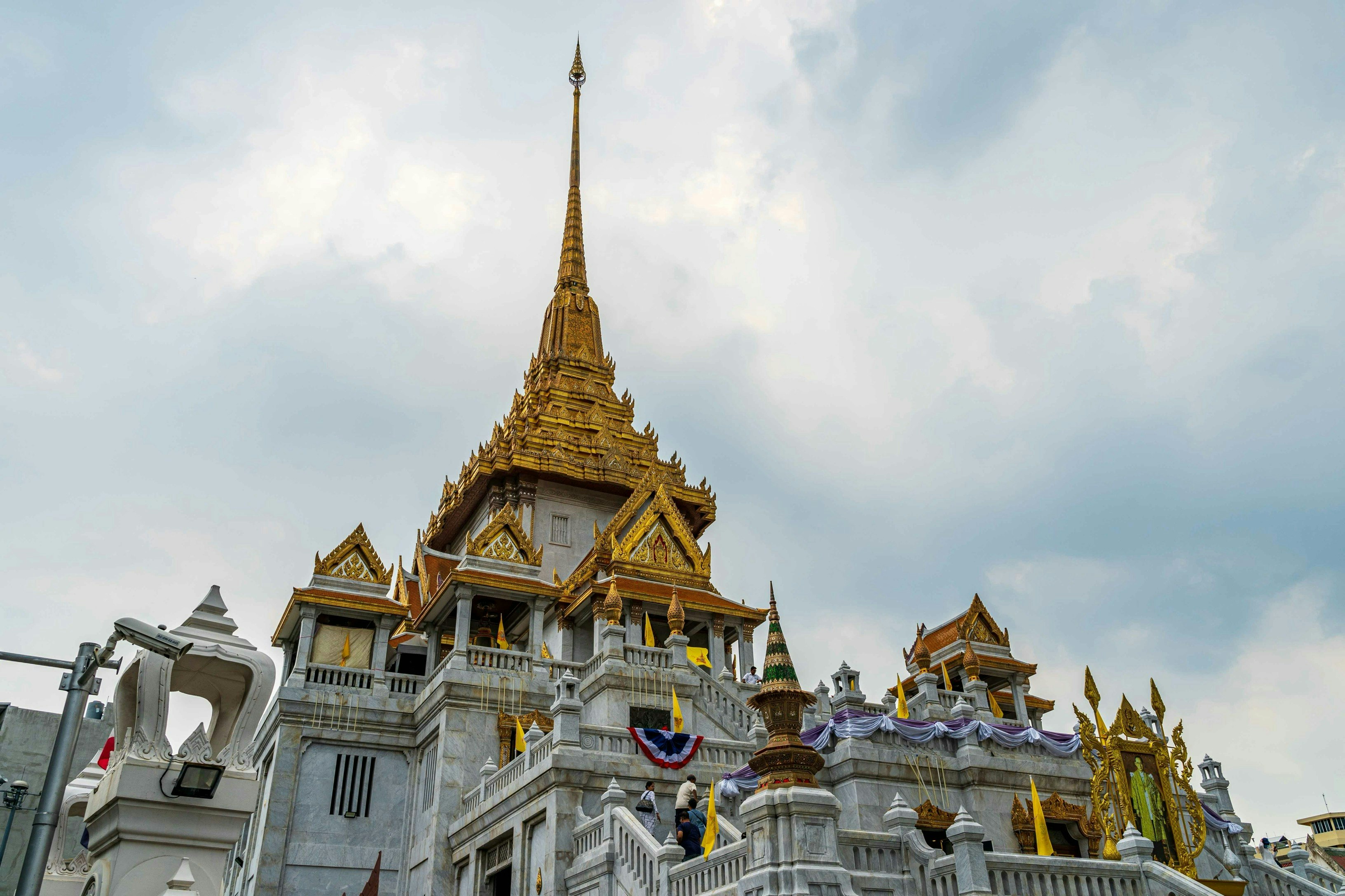 Wat Traimit Withayaram Worawihan houses one of the world's most remarkable treasures: the Golden Buddha, the world's largest solid gold Buddha statue. Standing three meters tall and weighing an astounding 5.5 tonnes of pure gold, this statue is a breathtaking sight that captivates all who visit. The Buddha's history is as remarkable as its appearance. For centuries, the statue was hidden under a layer of plaster, a protective measure taken before 1767 to prevent Burmese invaders from stealing it. The true golden nature of the statue remained hidden until 1955, when it accidentally fell and the plaster cracked open, revealing the glittering gold beneath. Scholars believe the statue was originally cast in the 13th century, making it an ancient masterpiece. Visiting the Golden Buddha is a spiritual and artistic experience that connects you to centuries of Thai Buddhist devotion.